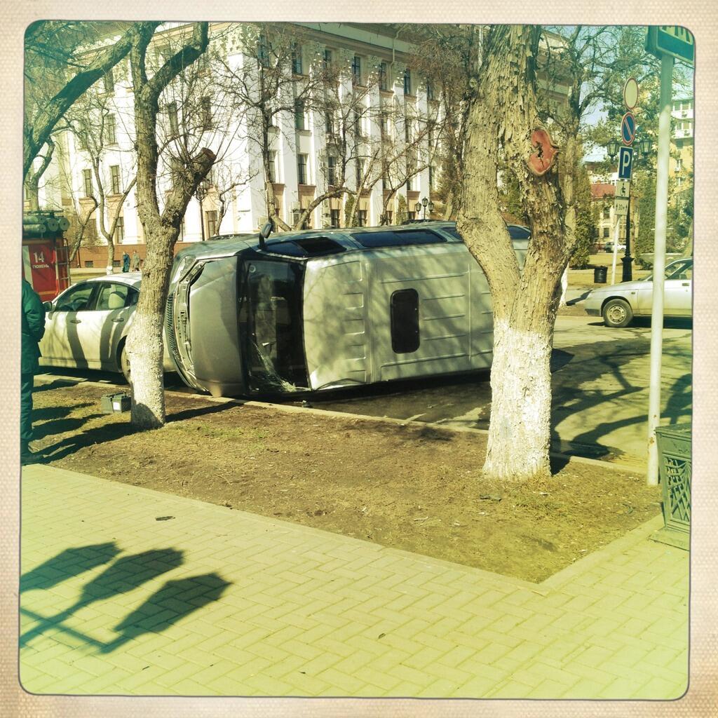 Возле здания Правительства лежит перевернутый микроавтобус. ДТП или учения? UPD: ДТП