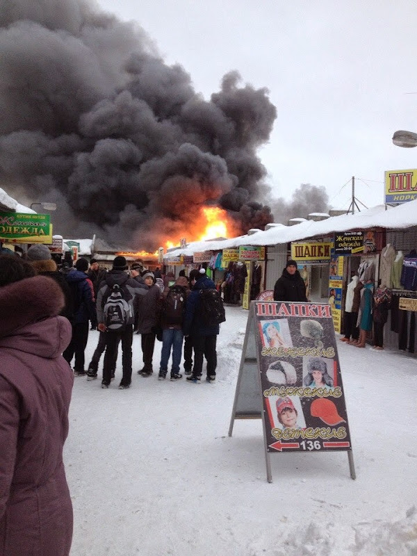 Крупный пожар в Нижневартовске, горит вещевой рынок. ФОТО, ВИДЕО очевидцев